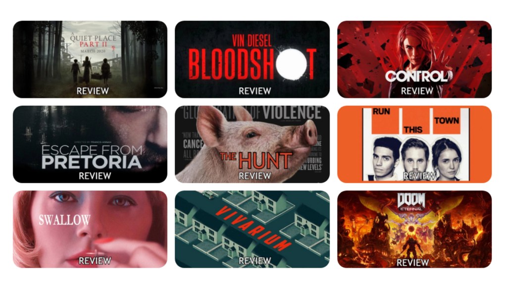 Just a quick update regarding My Blog,So i decided to review 15 films that i feel are somewhat hidden gems and/or i just have a soft spot for. Also given the current quarantine and if you find yourself with nothing to do, if you haven’t seen any of the films i highly recommend you watch these.I will list each film below with the title and genre of the film so you can see if it’s your cup of tea (As well as the release date of my review for the film).P.s. if anyone has any film suggestion for a Review please leave a comment below.1) The Death Of Stalin—Dark Comedy (Review 17th August)2) UPGRADE—Sci-Fi/Action (Review 19th August)3) Game Night—Comedy/Mystery (Review 19th August)4) Train To Busan—Horror (Review 21st August)5) Swiss Army Man—Comedy (Review 22nd August)6) The Nice Guys—Crime Comedy (Review 25th August)7) Martyrs (2008)—Horror/Thriller (Review 26th August)8) Love Simon—Romance (Review 27th August)9) Her—Romance (Review 27th August)10) Green Room—Thriller (Review 28th August)11) Dredd—Action/Crime (Review 29th August)12) Chronicle—Superhero/drama (Review 29th August)13) The Fundamentals of Caring—Comedy (Review 29th August)14) Autopsy Of Jane Doe—Horror (Review 30th August)15) Hush—Horror/Slasher (Review August 31st)So i have a busy few weeks aswell as reviewing new film that are coming out. I do my blog mostly for self entertainment because its something i’m passionate about, but i really do appreciate the people who take their time to read, share or even press a like on my posts it really does motivate me more to keep doing new stuff.Thanks everyone.