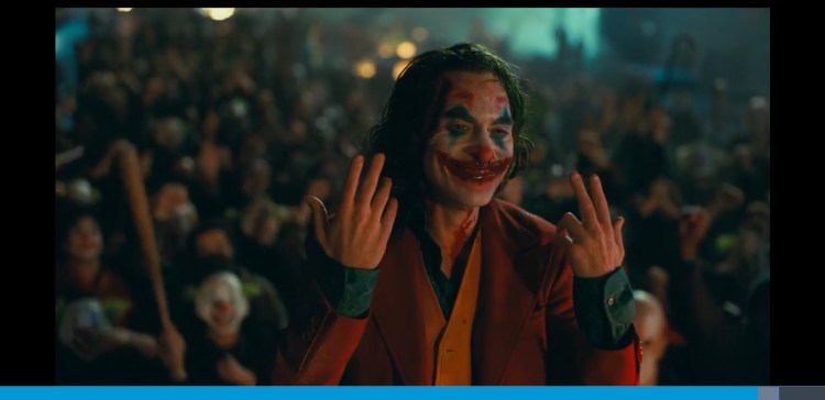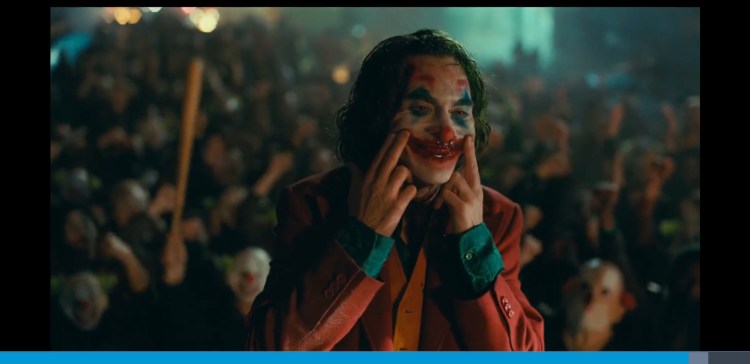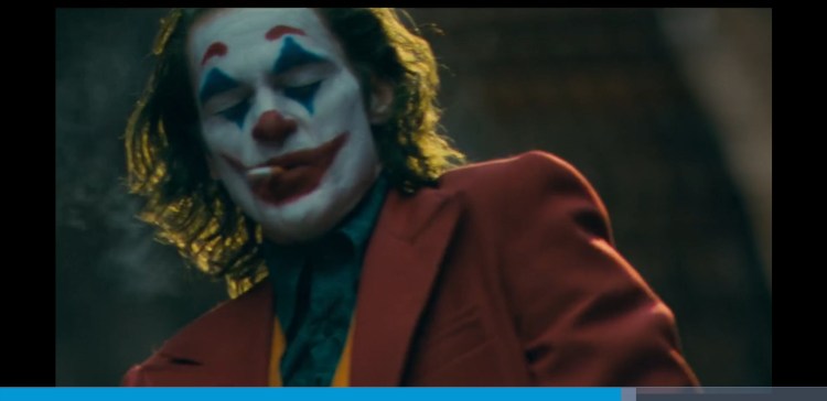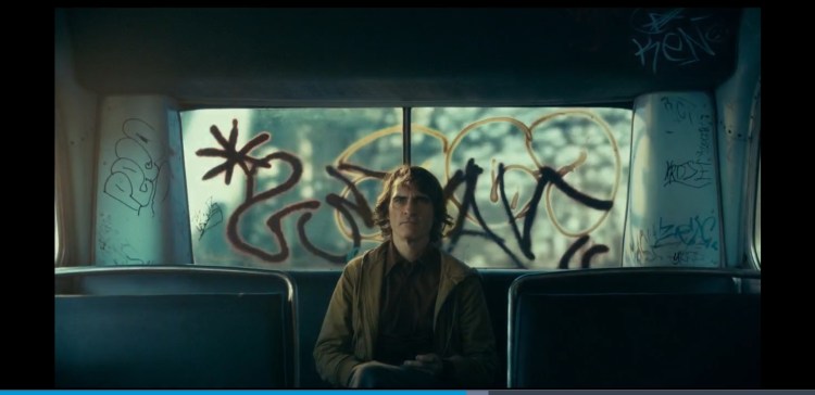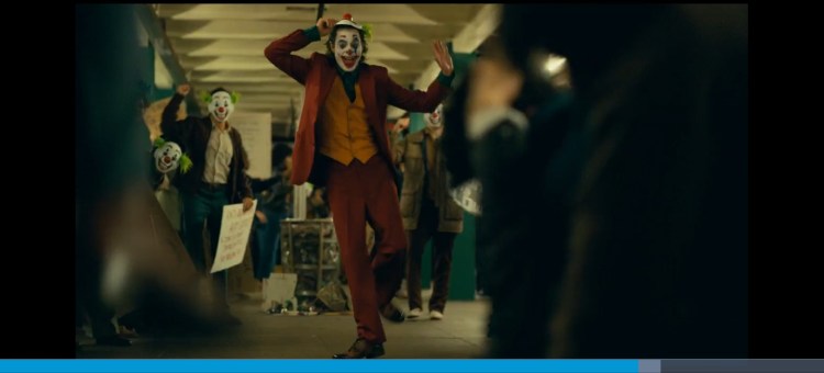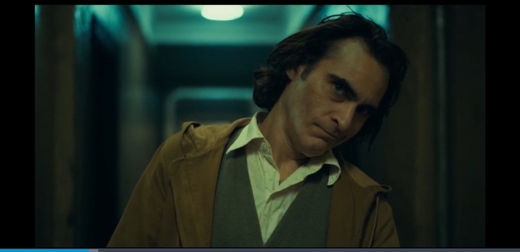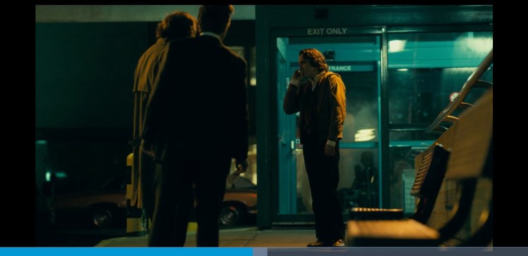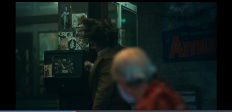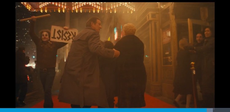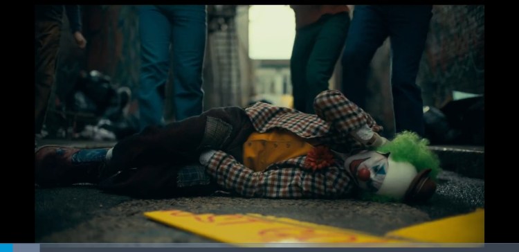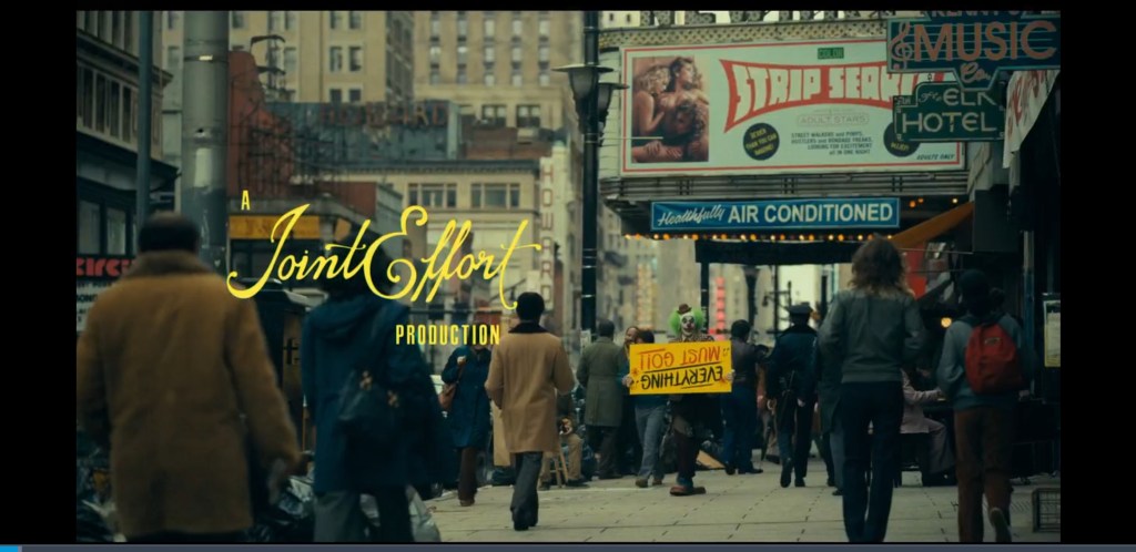 0:02:03 Arthur spots the sign is the wrong way and doesn’t seem too bothered about it. This is a metaphor for his descent into madness. His life is flipped upside down and he becomes the complete opposite of what he is now but at the end he doesn’t really care. Also at 1:49:25 someone can be seen holding a sign upside down just like Arthur at the start. Throughout the scene you can hear people ever so slightly in the background criticise his clown act. Just showing what he says at the end of the Murray Franklin show about everyone being awful these days is true.