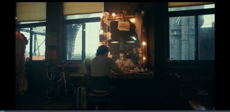 0:43:00 a subtle nod that Sophie isn’t really there at Arthurs comedy show as she is the only audience member who isn’t in shadow.