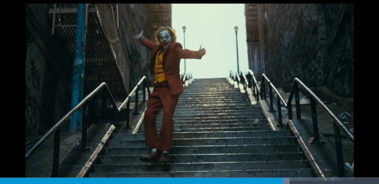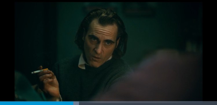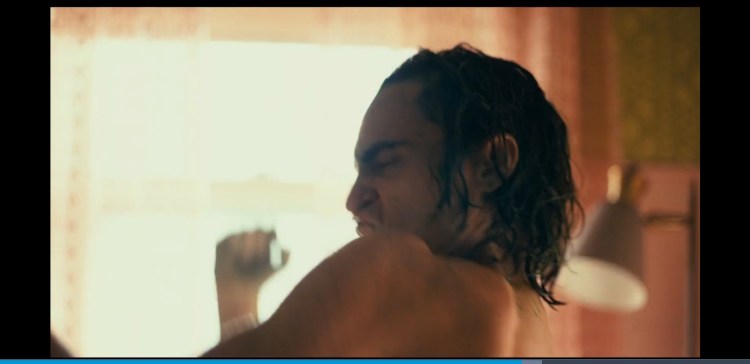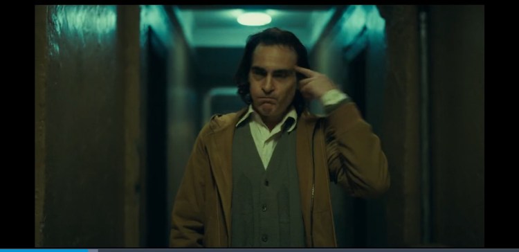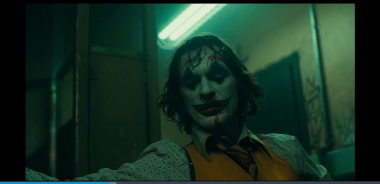 In the scene with the therapist a violin is played from Hildur Guðnadóttir score but it only plays whilst Arthur is getting all tense and soon as he snaps out of it the music comes to a sudden halt and then continues. The music plays whenever we are in Arthurs head. The music adresses what he is feeling. Just like when he goes down the staircase in the now iconic scene at 1:30:35, Rock and Roll part 2 plays. He now feels like a Rockstar, the star of his own show. He dances in sync to the music playing but in that actual world there is nothing playing it’s all in his head.