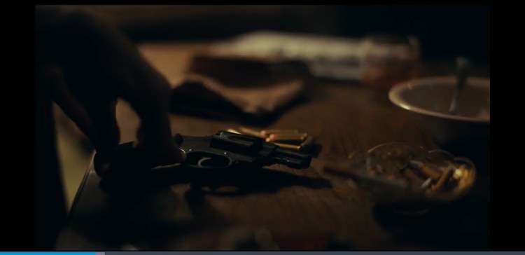 0:33:48 there is a faint ringing that films sometimes utilize to show PTSD (something that is caused from severe trauma) and killing someone would be considered traumatic to some.