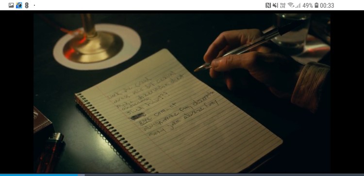 0:26:00 We get a shot of Arthurs Journal and it tells us quite a little about the last portion of the film. The journal has written in it; Work the Crowd , Make observations about the audience and always make funny observations this tells us what he is going to do on the Murray Franklin show. All this points to when he talks about the audience saying that they are all awful and terrible people before insulting Murray with the same insult. And saying that the 3 men he killed on the subway couldn’t carry a tune to save their lives ‘observing’ that they were singing just before they were killed. It also read sexy jokes are always funny and he kisses Dr Sally on the Murray Franklin show as a joke. The rest of the page just points out The Joker’s final look and him killing murray “Slick hair, dress nice but casual, make eye contact which he does when he shoots murray in the head.