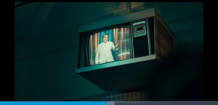 0:23:25 this shot makes it look like Arthur is on a tv screen giving us another hint that what we see might not be what it seems.