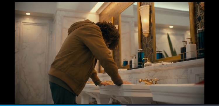 At 0:22:00 we see Arthur begin to create another scenario in his head but this time we dont cut to a fantasy in his head we instead see Arthur acting it out that’s because the music that is playing in the background is coming from the TV not from his mind. So because his mind isn’t creating the entire “scene” we don’t have a cut to an illusion which normally happens in the film. Except for one scene The aforementioned bathroom scene at 0:34:50.The now iconic dance starts and again the music is playing in Arthurs head this contrasts the scene earlier at 0:22:00 where he was fantasising about dancing and the fact this was a last minute edition and the dance was improvised by Joaquin makes it oh so more special.