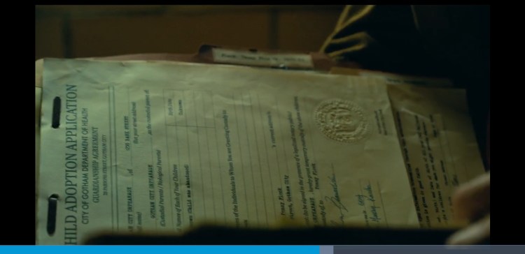At 0:51:05 he puts a picture in his Joke Diary of Thomas, Martha and Bruce Wayne a reference to the ending where Arthur thinks of a joke when he is locked up and we then cut a shot of the Wayne’s dead that’s his joke.